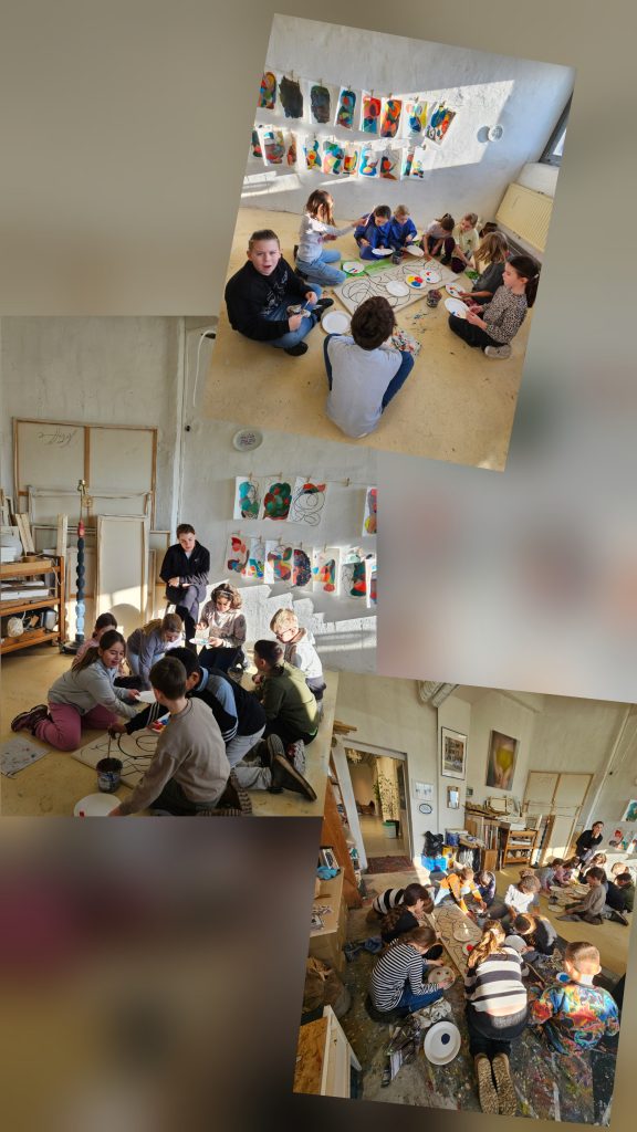 Die 3 b war am 05.02.2026 mit den Kulturstrolchen unterwegs. Wir haben Johanna Bath im Kulturrevier Radbod besucht. Dort haben wir uns im Atelier mit dem Thema „Was sind Farben“ beschäftigt und einige tolle Erfahrungen zum Mischen von Farben gemacht. Jedes Kind erhält am Ende ein eigenes Bild und für die Klasse gibt es noch 3 große Bilder.