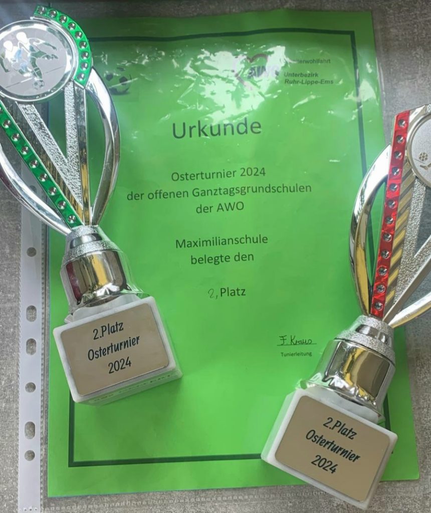 Die Maximilianschule hat den 2. Platz beim Osterturnier 2024 der offenen Ganztagsgrundschulen der AWO belegt!